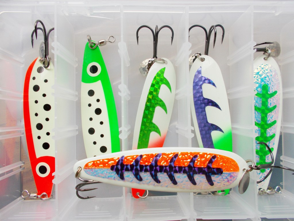 What’s better than having a high quality spoon with a “fish-popping” color scheme?  Having six of them – and that’s what you get with a Captain’s Pack of spoons from Great Lakes Tackle like GLT’s Hot Mag Mix shown here. The Hot Mag Pack is a mix of their most popular individually-sold patterns and more. It includes a pair of their Zombie Apocalypse SuperGlows, another pair of the Head Hunter SuperGlows and includes a pair of ladder-back patterns only available in the Captain’s Pack. The spoons come packed in a six compartment Plano box.