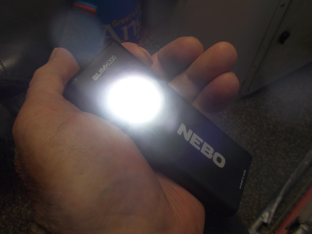 So the Nebo Slim+ 1200 checks my most important block. The + on the name is for the other boxes it checks like the red laser pointer – not so useful for fishing. Better is the a strong magnetized base and sturdy pocket clip, both handy when they can be used. You can dim the light it so it’s less than 1200 lumens (why?). You can also change the light to glow red – I’m not sold on that, but more handy than the laser pointer.