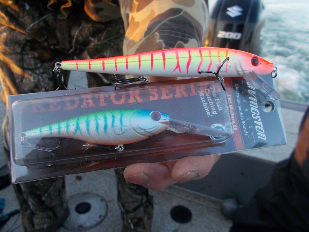 Livingstons are well made, well balanced and well-sized for walleye trolling but have one main difference. Instead of weights or rattles inside the lure body to add a sound feature to the lure, they have what is called EBS technology and acronym for electric baitfish sound. It’s basically a tiny devise implanted inside the lure that emits sounds that mimic the “screams” of fleeing baitfish. Since then, my fishing friends and I just call those lures, the “screamers.”