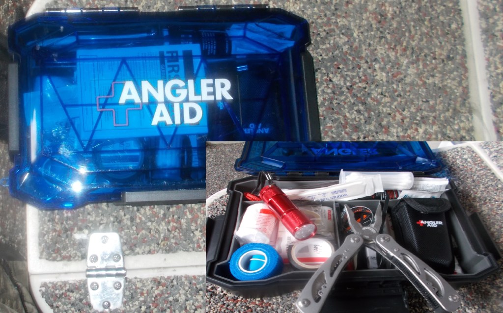 Not only does it have the usual bandaids, gauze, antiseptic, cotton swabs and both adhesive and sports tape, it has electrical tape, a multi-tool, assorted fuses, hose clamps, a bright LED flashlight and much, much more. Most “body or boat” problems that can be treated or fixed while underway can be handled with an Angler Aid Safety Kit. If you (or your boat) needs to upgrade so the emergency supplies common sense dictates having in your boat or car, check out all three sizes at http://www.angleraid.com or in retail outlets.